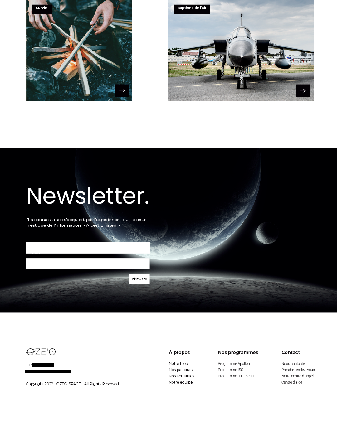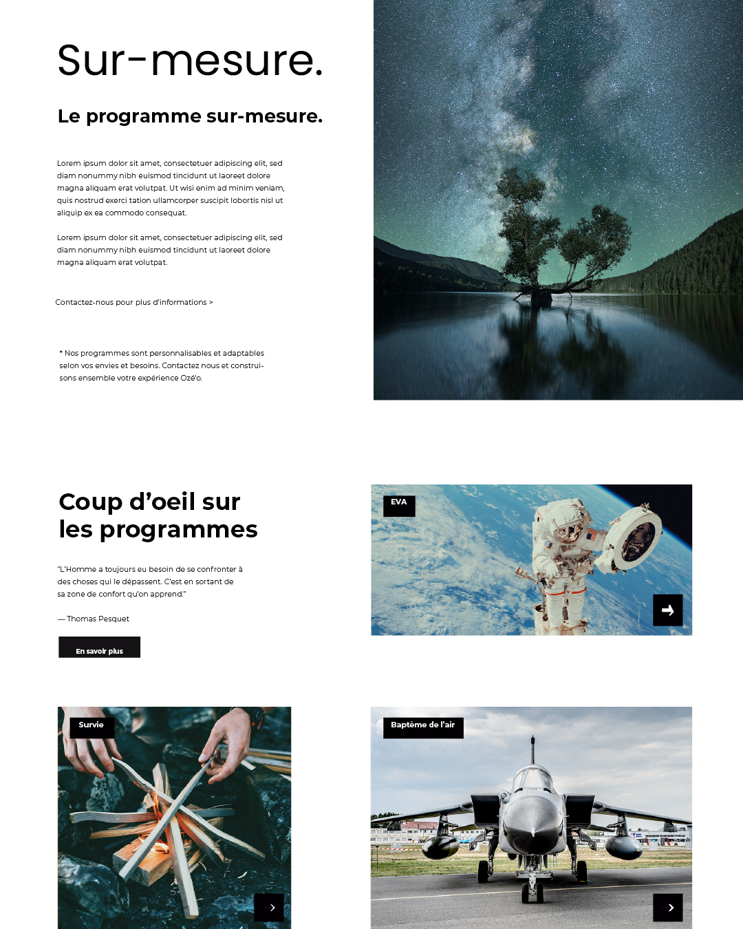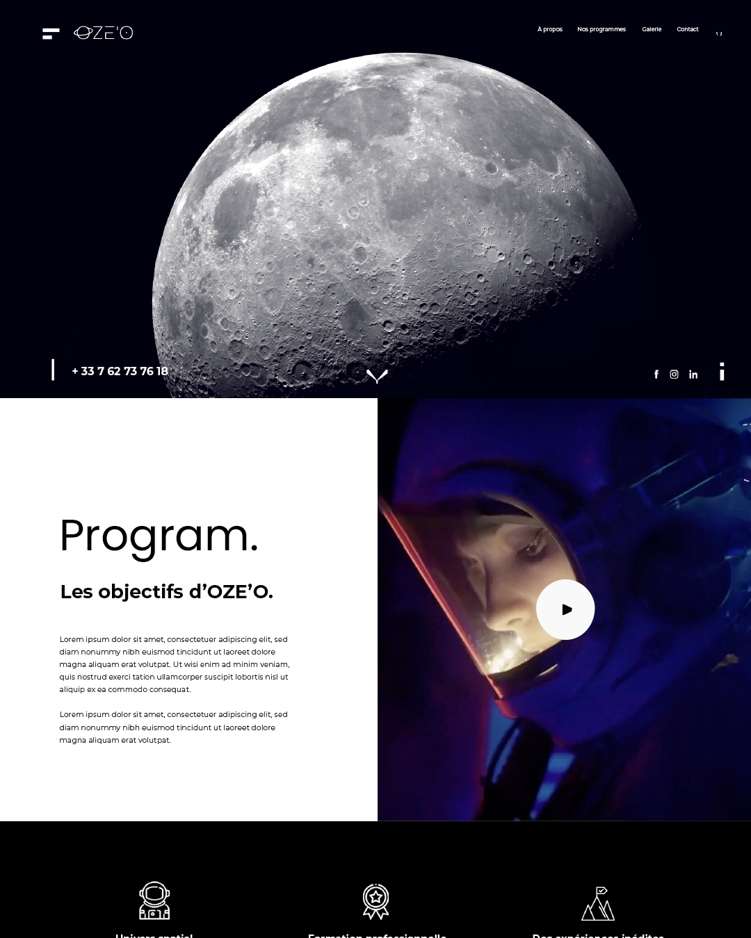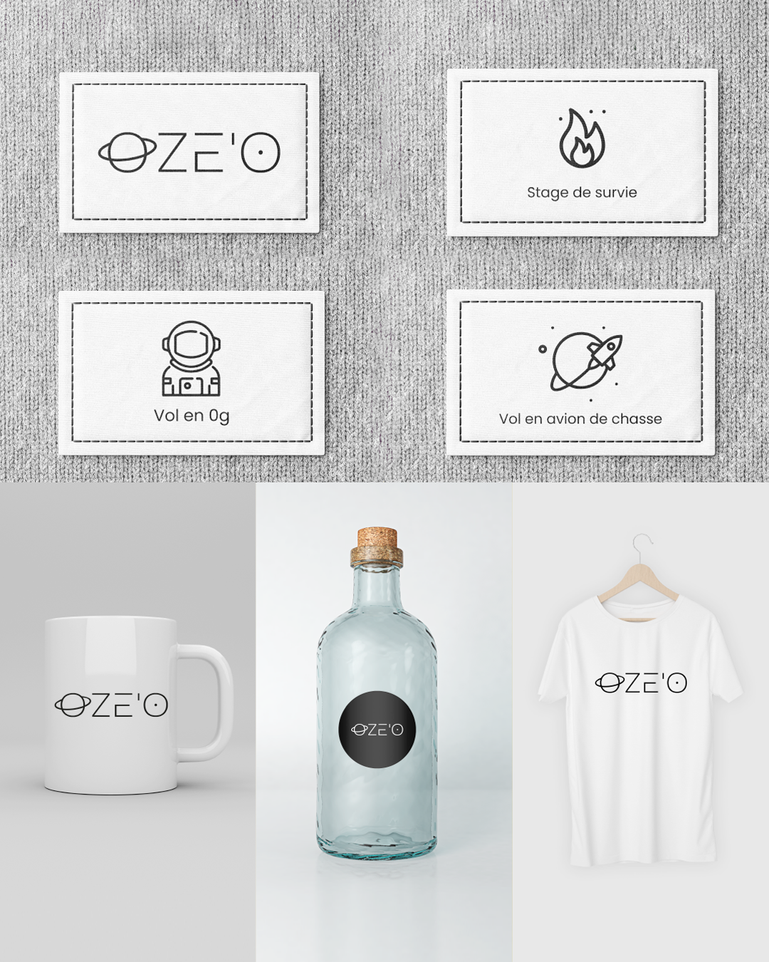 Oze’o se concentre sur des expériences basées sur l’entraînement des astronautes. Ces expériences immersives sont conçues pour répondre aux problématiques RH des entreprises : gestion du stress, travail, cohésion d’équipe, communication, gestion des conflits, etc. Le stage d’astronaute permet aux salariés et aux managers de développer leur potentiel. Oze’o m’a contacté pour construire son identité et son univers graphique.