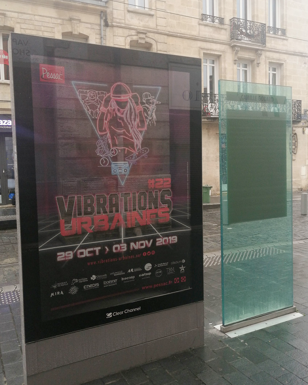 Ce projet est un événement qui se déroule en Gironde, en France. Notre création a été choisie pour représenter une nouvelle identité graphique pour la 22ème édition des Vibrations Urbaines de Pessac. Ce projet a été distribué dans toute la ville de Bordeaux. Depuis plus de 20 ans (la première édition du festival date de 1997), Vibrations Urbaines est le principal festival de culture urbaine de la région. Au programme : des compétitions de skateboard, de BMX, de trot, le Pessac Battle Arena (Breakdance Hip Hop), des soirées concerts, des performances et expositions de street art, un concours national d’art urbain contemporain, un espace multimédia et des ateliers gratuits pour les 12-25 ans. C’est dans son histoire que nous avons créé une nouvelle identité. Nous avons fusionné certaines des cultures urbaines proposées par l’événement en une seule illustration : breakdance, skateboard, BMX et musique. Le tout est réuni dans un univers Street Cyberpunk, qui représente à la fois le temps et la culture urbaine. Tout le monde peut s’y reconnaître.